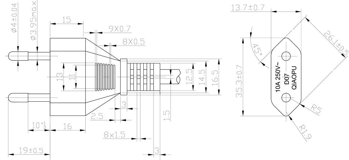 Italy Power Cords IMQ Approval IMQ01 End Drawing (RoHS COMPLIANT)